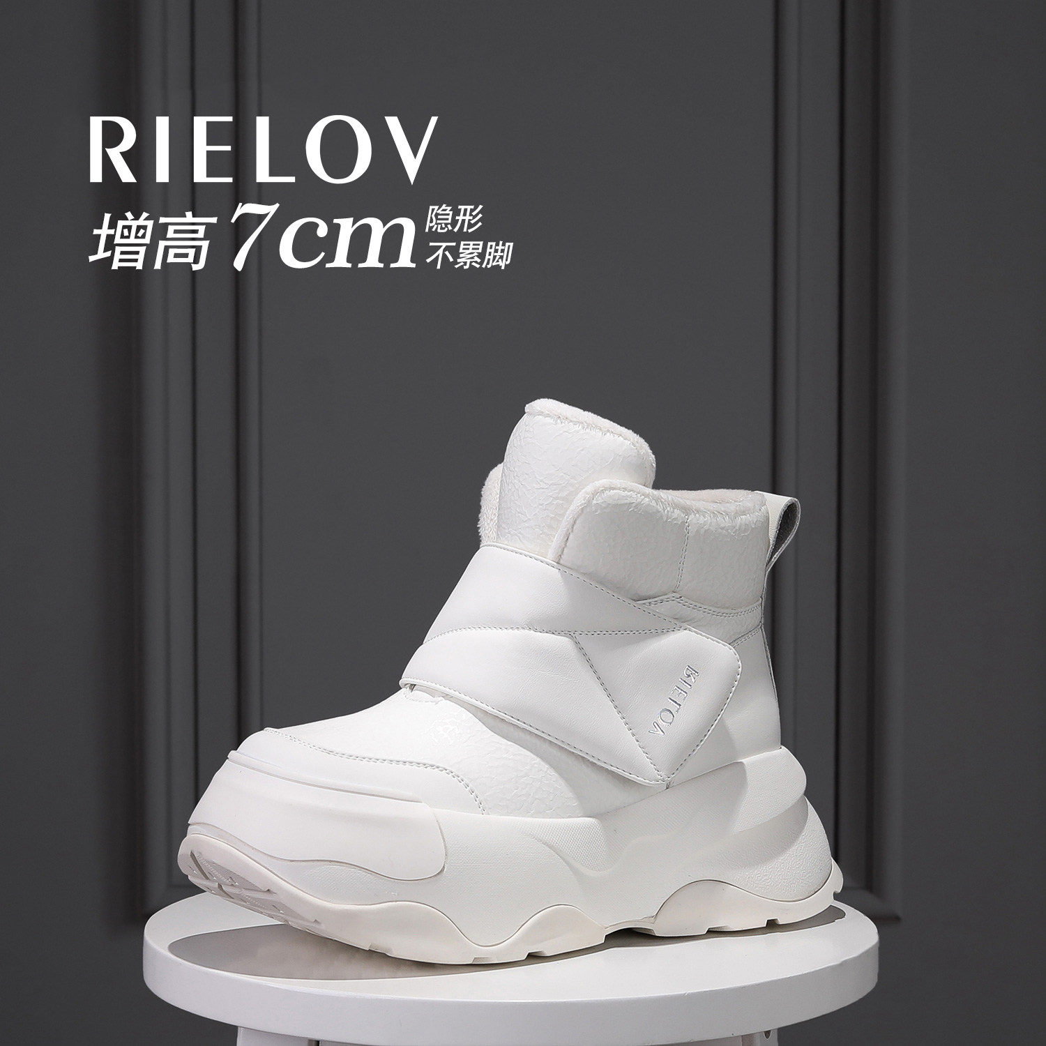RIELOV Little White Shoes Women's Height Enhancement 2025 New Ugly Cute Big Head Shoes Velcro Thick Sole Fleece Cotton Shoes Women's Winter