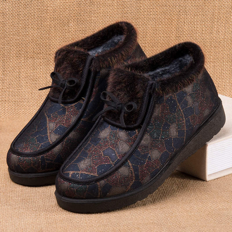 Winter old Beijing cloth shoes, women's cotton shoes, fleece thickened warm mother cotton boots, waterproof and non-slip middle-aged and elderly snow boots