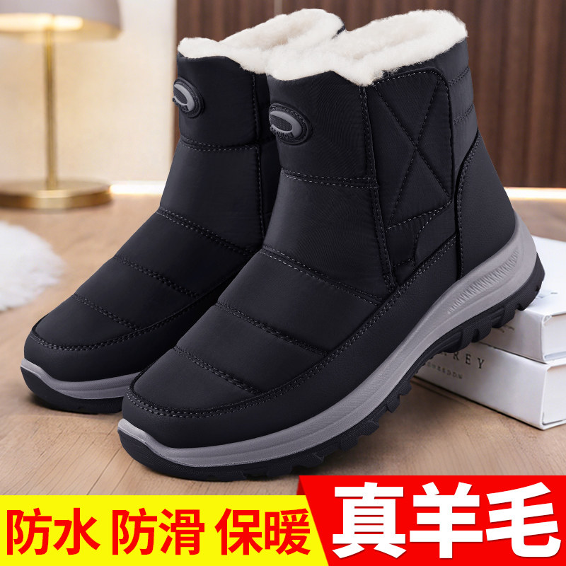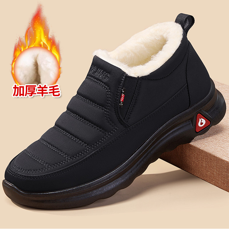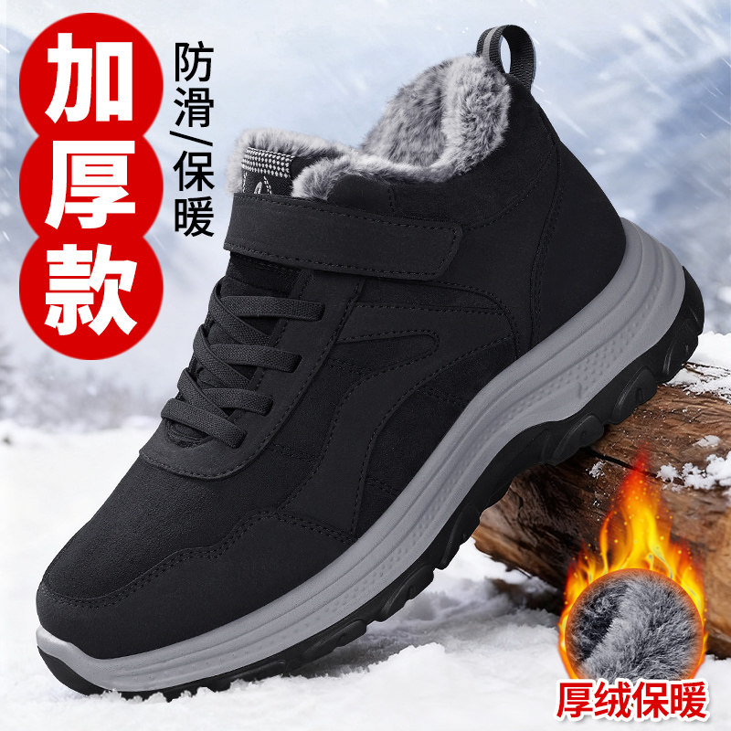 Old Beijing cotton shoes men's winter fleece thickened 2025 new snow boots high-top non-slip comfortable and warm dad shoes