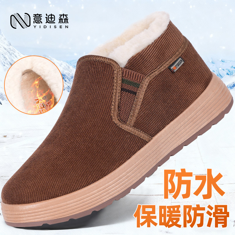 Yidison old Beijing cloth shoes men's official winter fleece thickened non-slip warm dad cotton shoes soft soles for the elderly