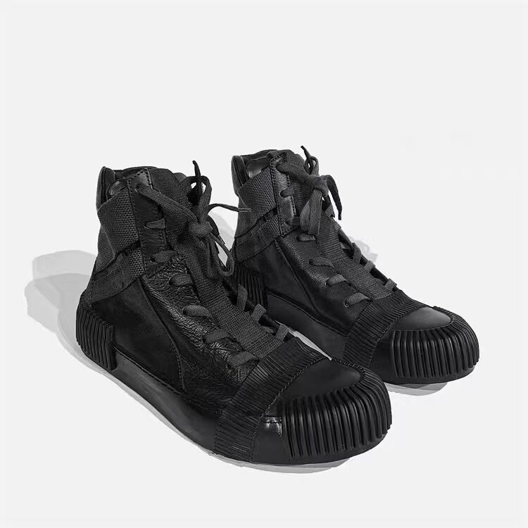 Spring men's and women's black and white double-layer platform soles inverted triangle high-top shoes men's high street casual board shoes height-increasing shoes Martin boots