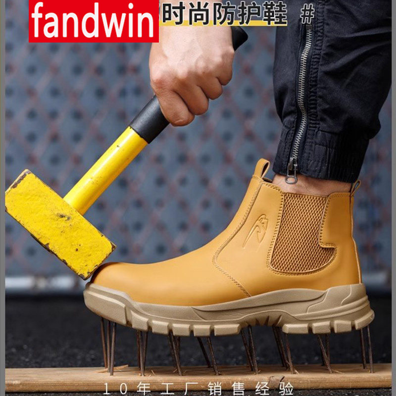 Labor protection shoes, men's shoes, fashion retro Chelsea boots, safety work shoes, men's anti-smash, anti-puncture, steel toe protective shoes