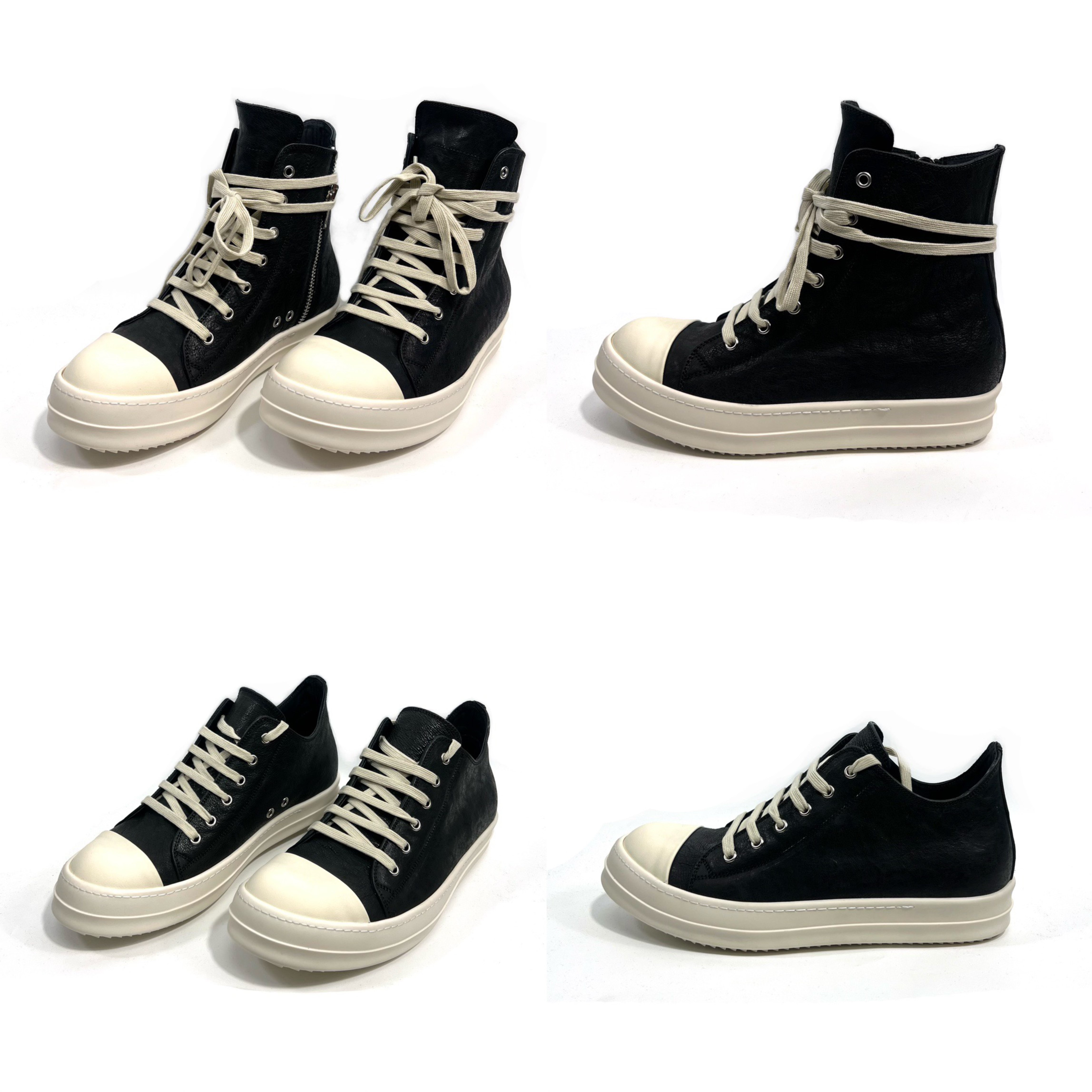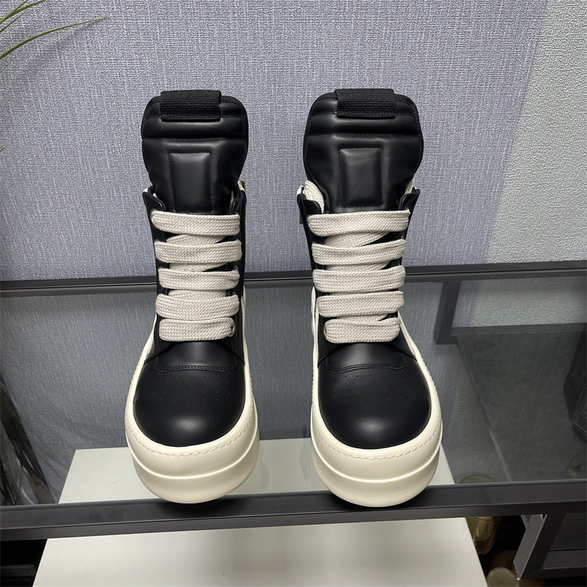 RICK OCEAN RO independent main line leather surface milky sole dark black and white platform high street high-top shoes