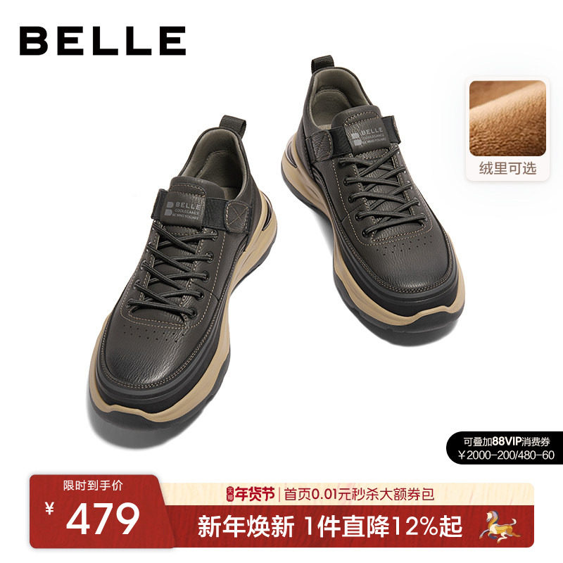Belle Men's Platform Casual Workwear Cotton Shoes Men's Outdoor Dad Boots Soft Sole High Top Sports Fleece 8MU01D