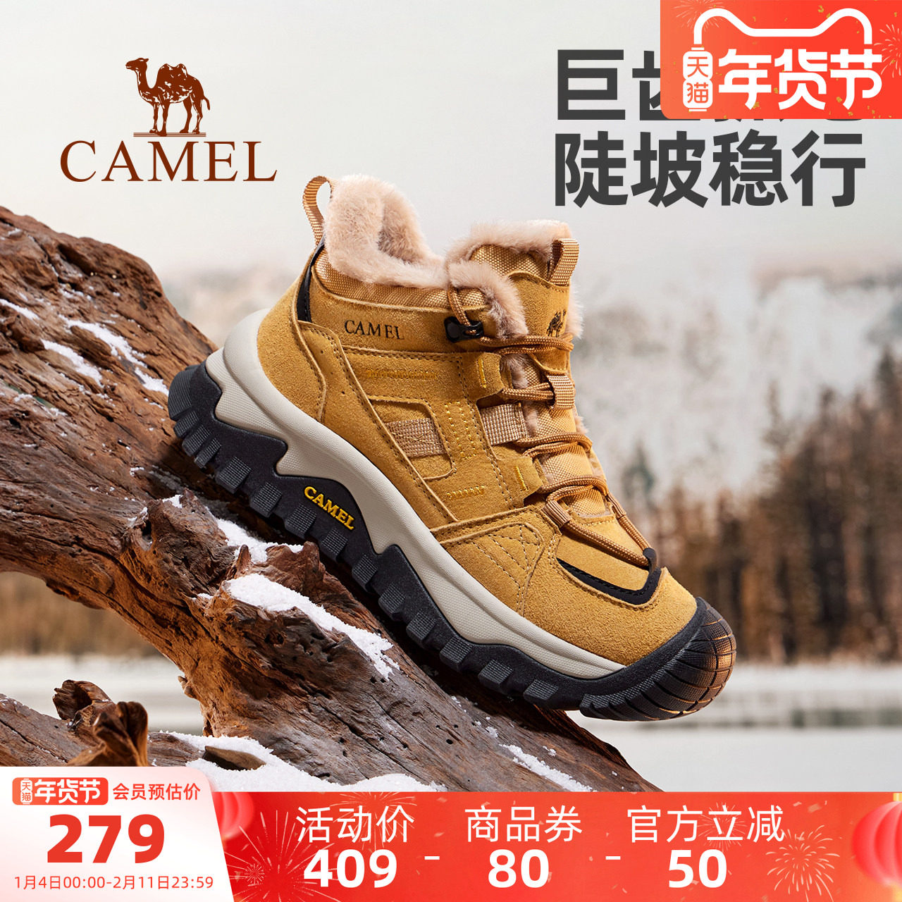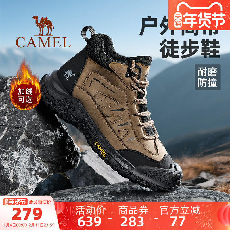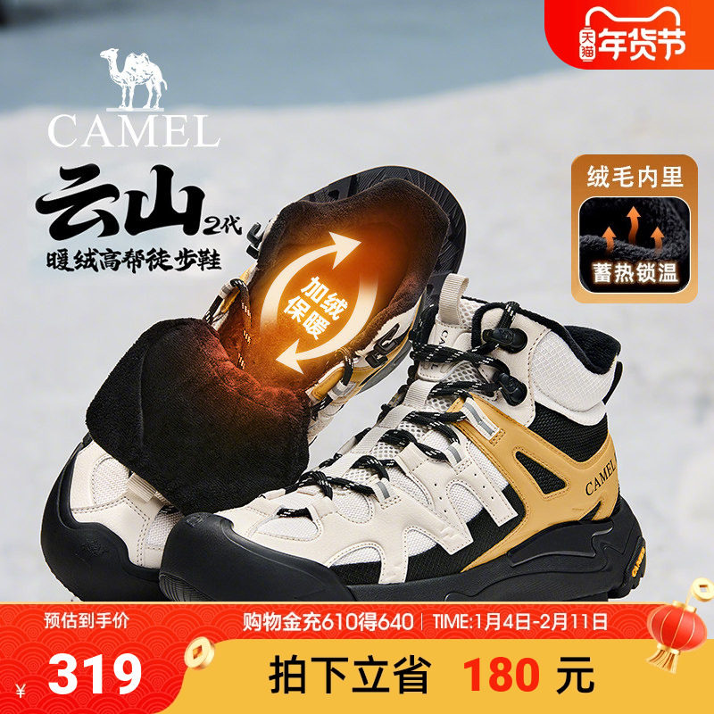 Pull-back high-top men's shoes winter fleece warm sports non-slip and wear-resistant mountaineering dad shoes thick-soled heightened Martin boots