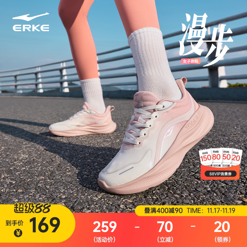 Strolling Hongxing Erke running shoes women's shock-absorbing soft-soled skipping rope shoes autumn and winter new fleece sneakers lightweight women's shoes