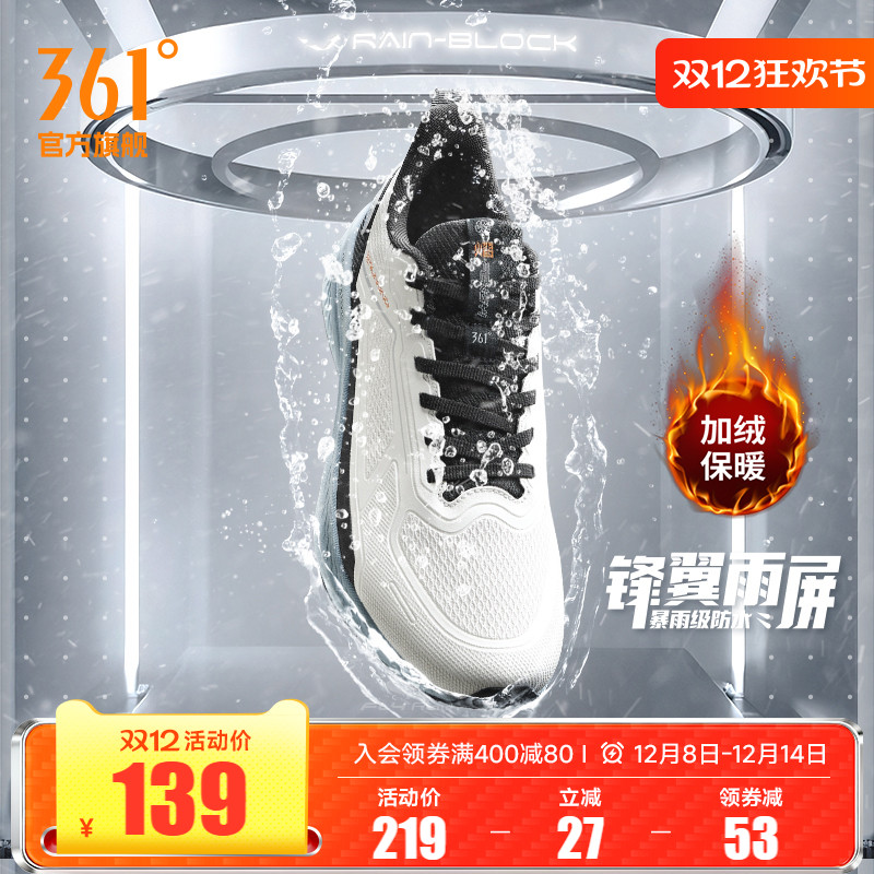 361 Yushan VB men's high-top fleece sneakers, winter warm cotton shoes, shock-absorbing, anti-slip, wear-resistant snow shoes for men