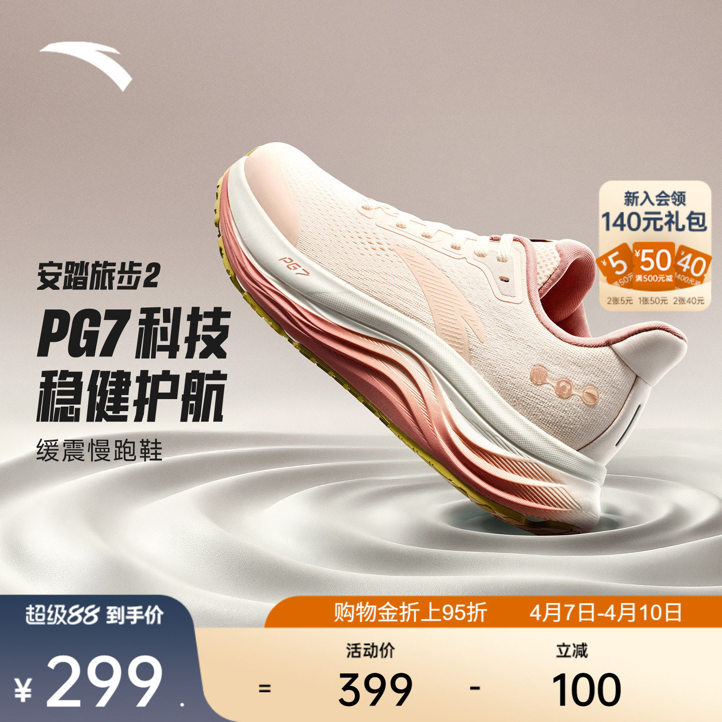 Anta Zone 2 heart rate 90丨Lightweight boardless men's racing competition training physical examination running shoes 112615579R
