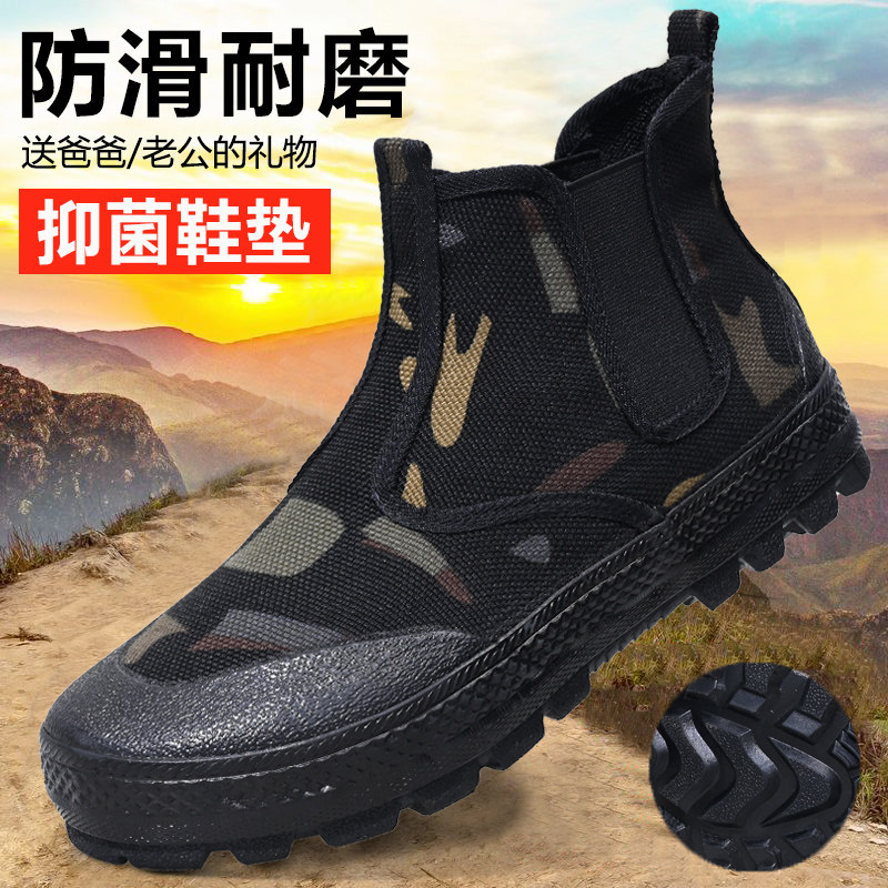 Labor protection shoes, construction site shoes, wear-resistant migrant workers, liberation canvas, anti-slip camouflage shoes, men's work rubber shoes, women