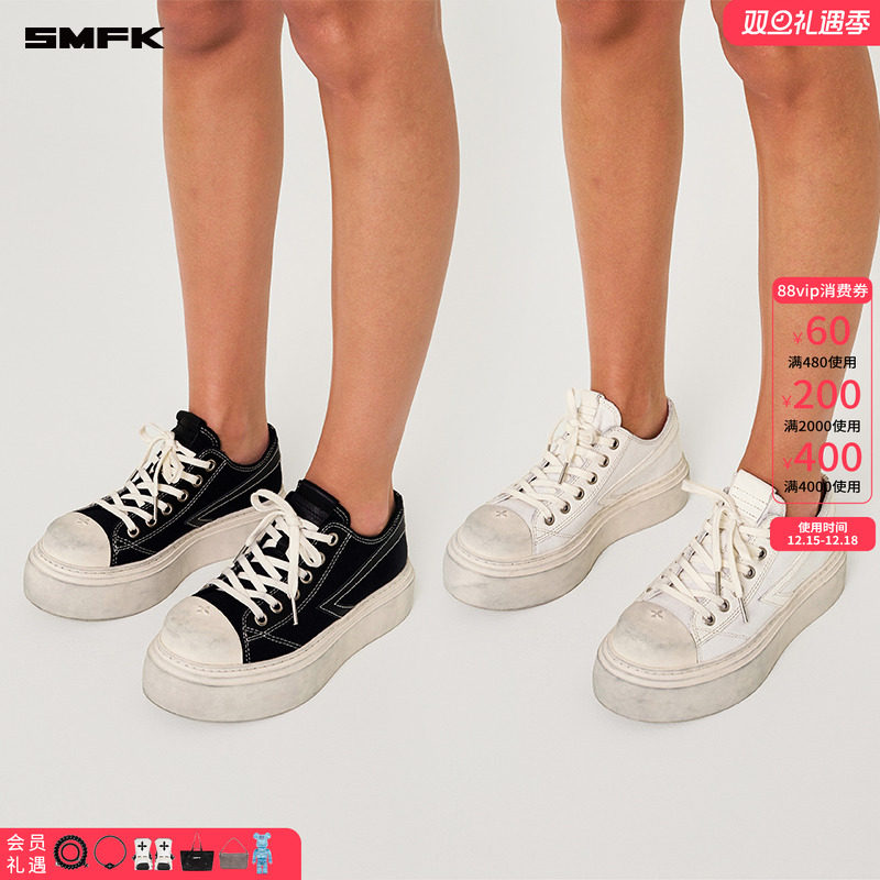 【Bi Wenjun Same Style】SMILEPUBLIC Classic Low-Top Open Smile 2.0 Platform Canvas Shoes Daddy Shoes