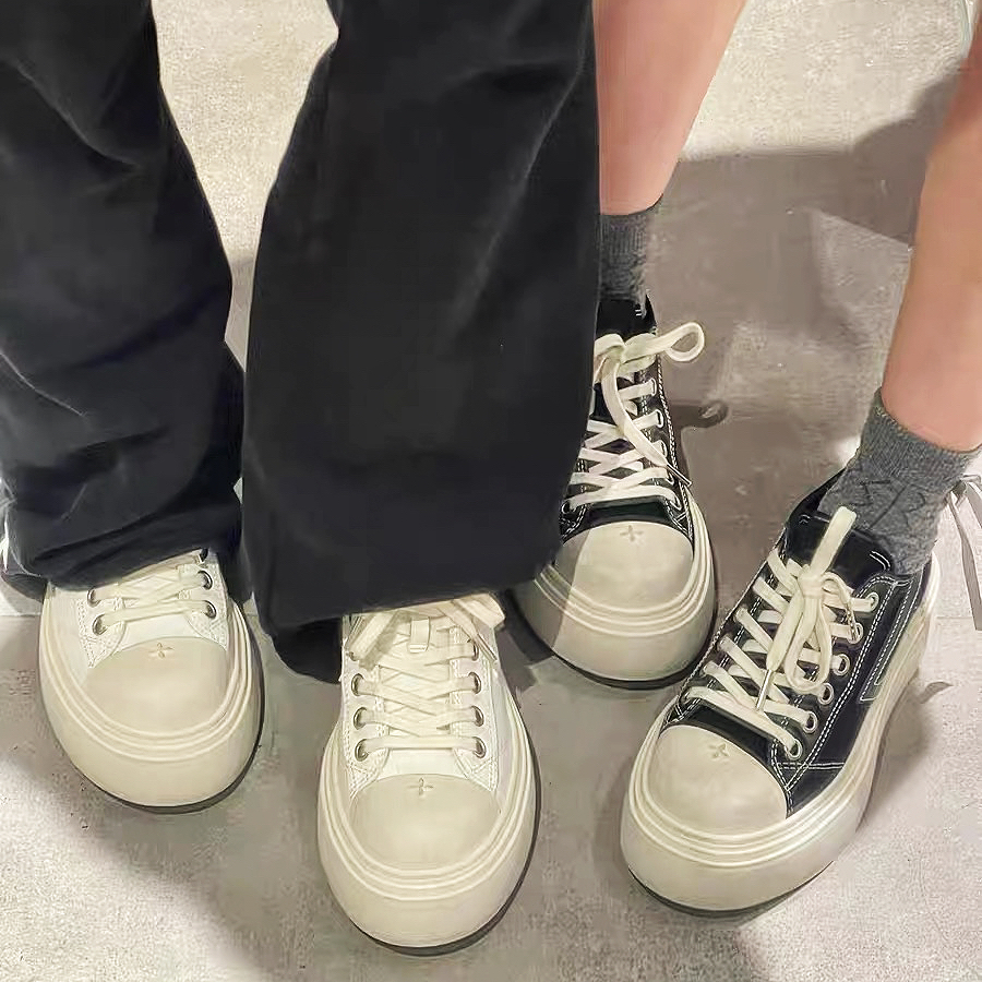 Hong Kong platform canvas shoes women's 2025 new spring and autumn muffin low-top inner heightened women's shoes breathable casual white shoes