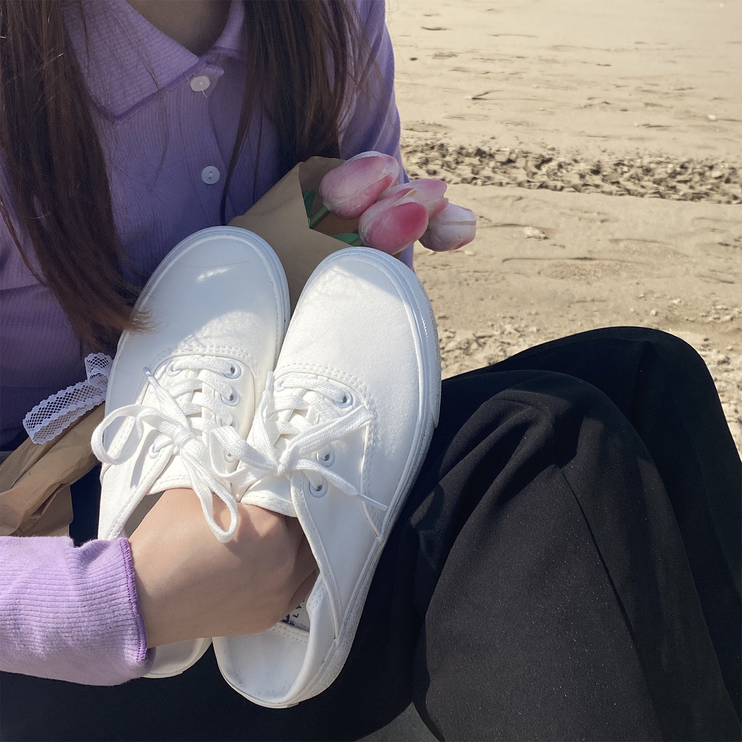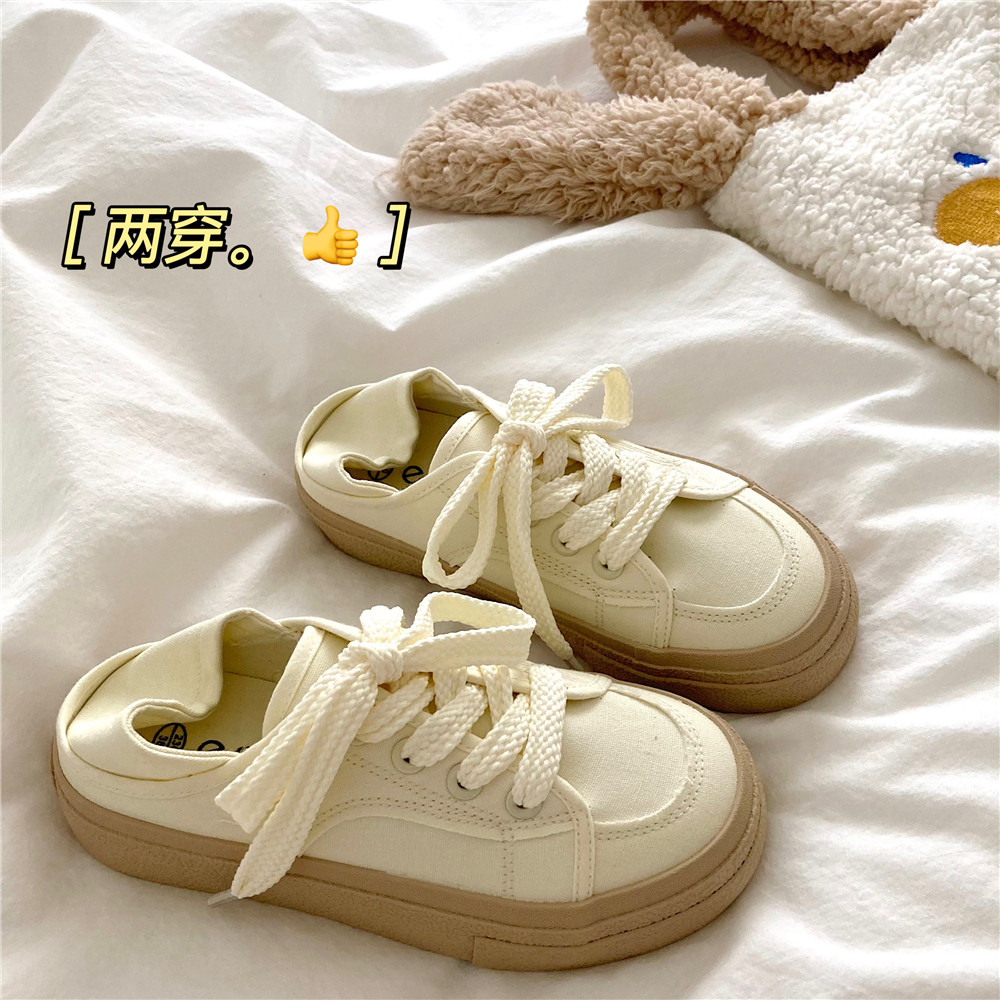 White canvas shoes women's spring versatile 2026 new white shoes ins street photography trendy shoes one-foot half-slipped women's shoes