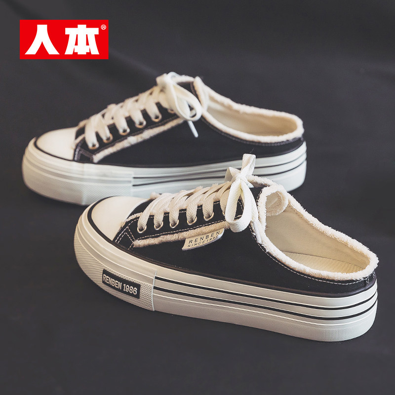 Human-oriented semi-slip canvas shoes women's 2026 new spring women's shoes wear versatile platform niche lazy beggar shoes