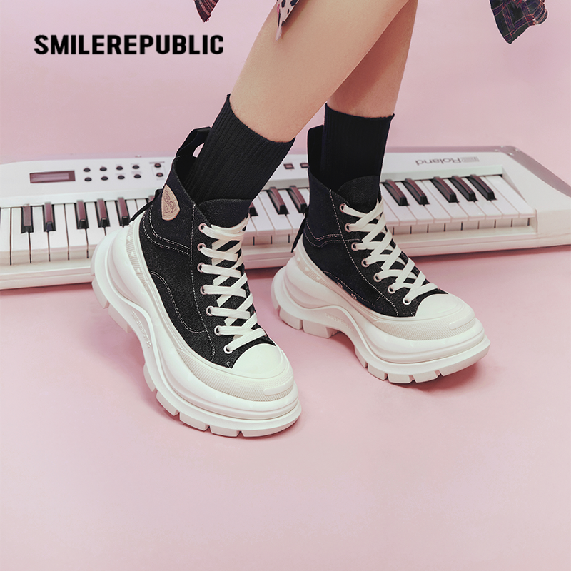 smile Republic Comedy Festival co-branded circus white open smile thick sole heightened canvas shoes white shoes