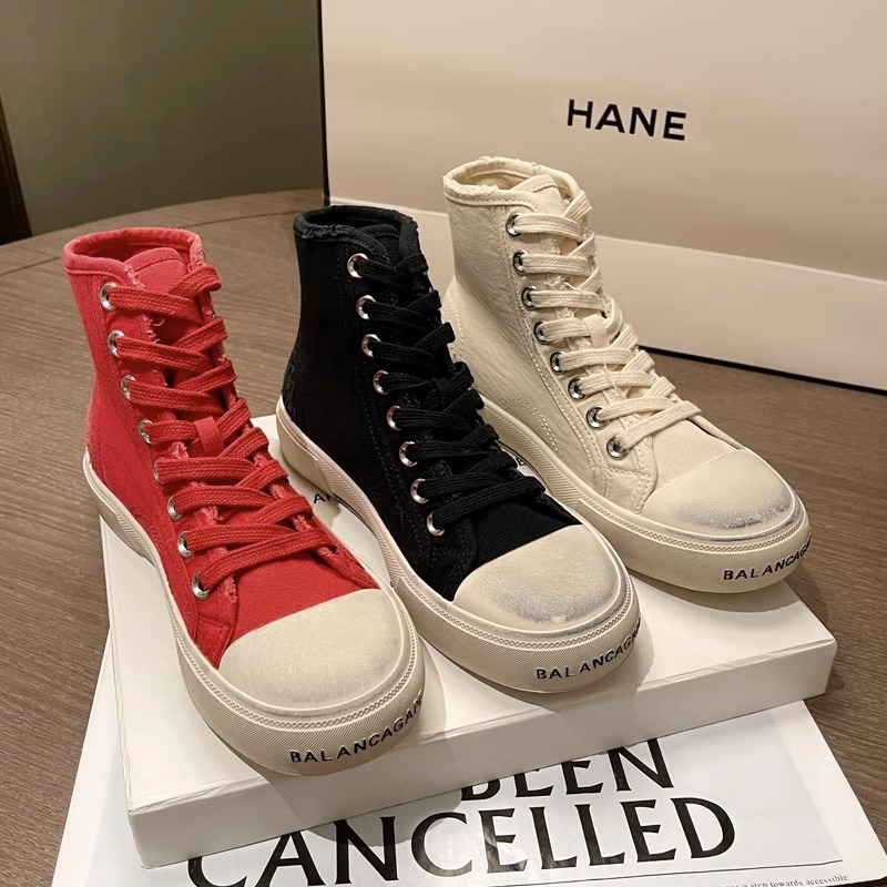 Hong Kong Paris high-top canvas shoes women's 2025 spring and autumn new distressed retro dirty shoes ins board shoes are versatile trend