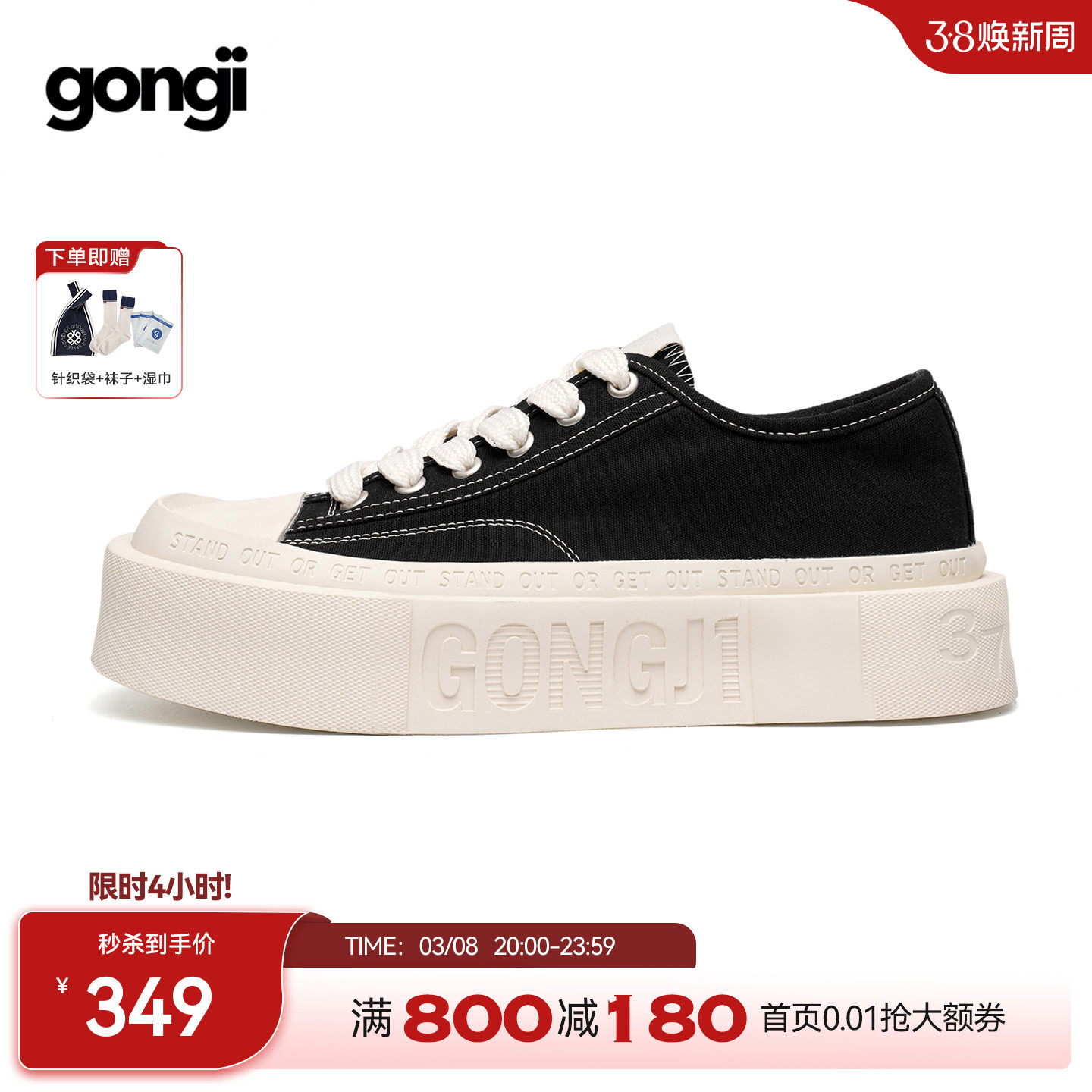 【Mencius Ziyi's same style】GONGJI square-toed platform canvas shoes, women's national trend, niche design board shoes, white shoes