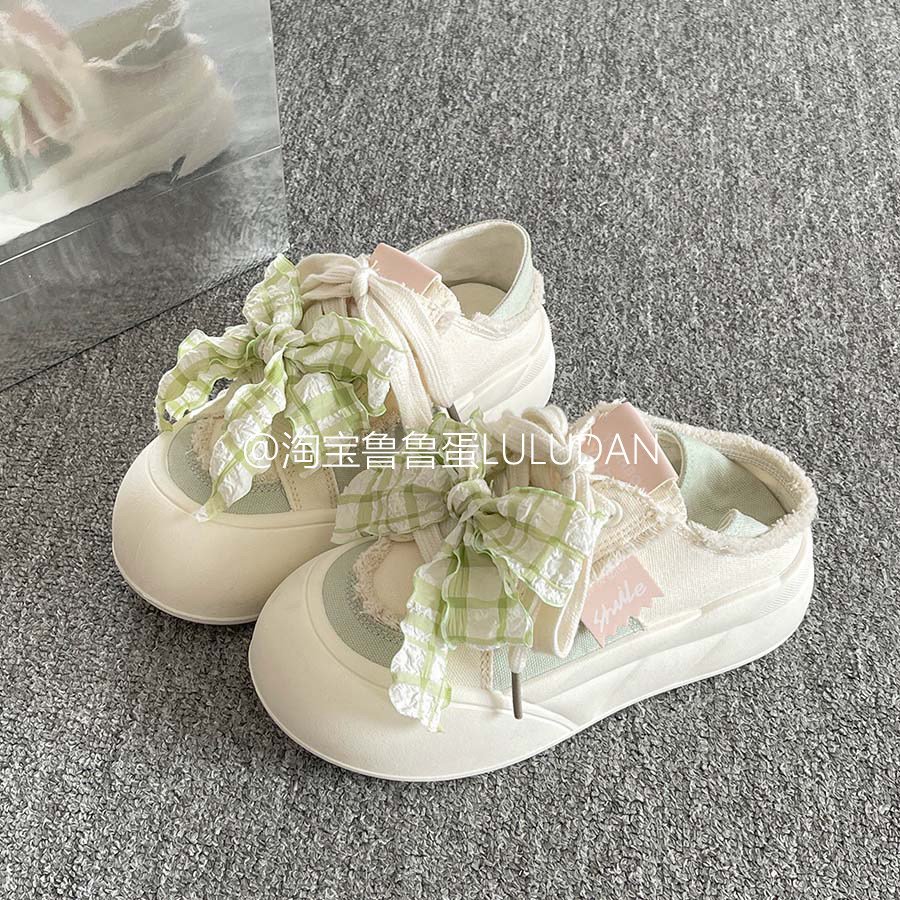 Hong Kong smiles, thick-soled heightening canvas shoes, women's 2026 spring and autumn versatile white shoes, ulzzang board shoes, ins trend