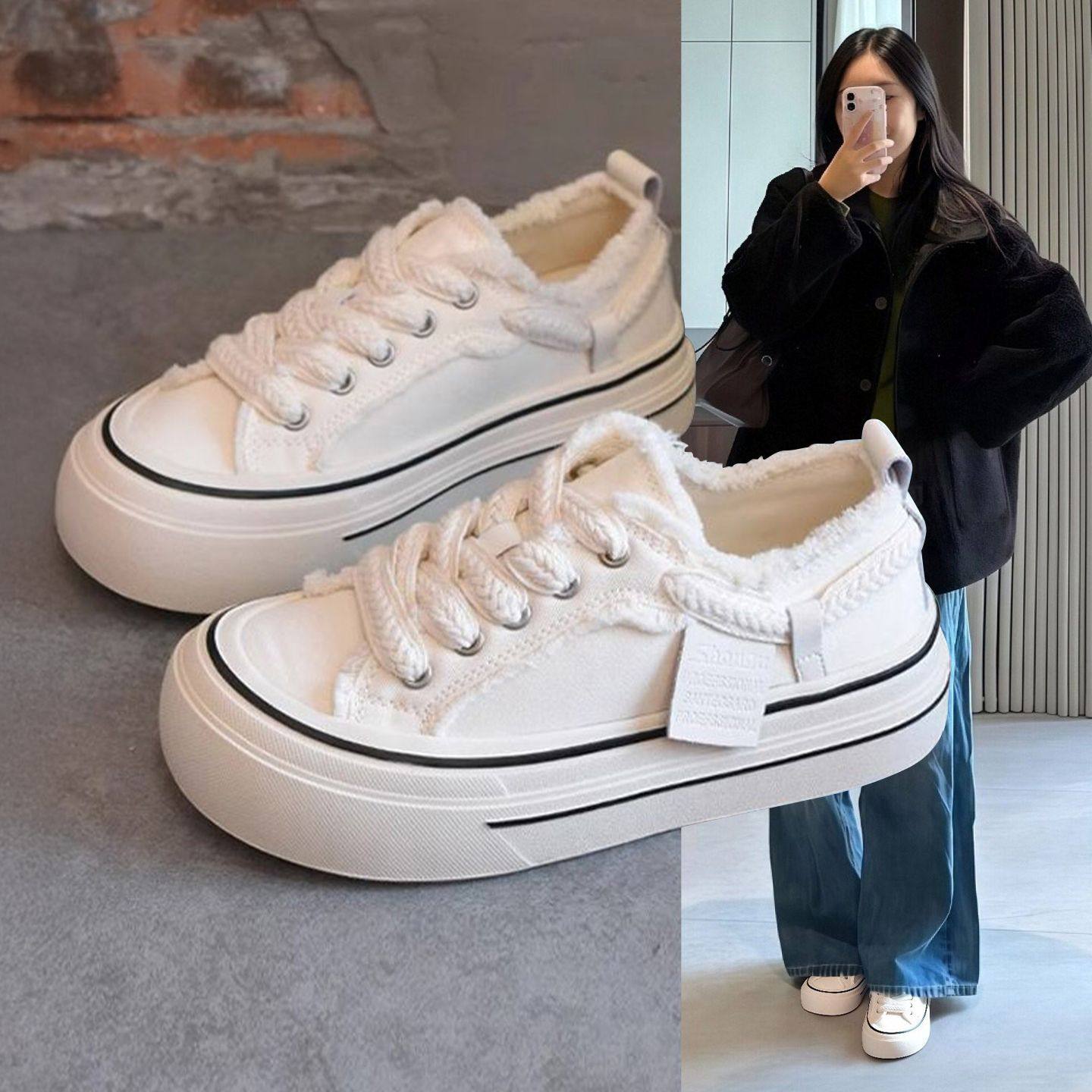 Hong Kong red platform canvas shoes women's 2026 spring and autumn Korean version versatile height-increasing white shoes casual shoes low-top board shoes