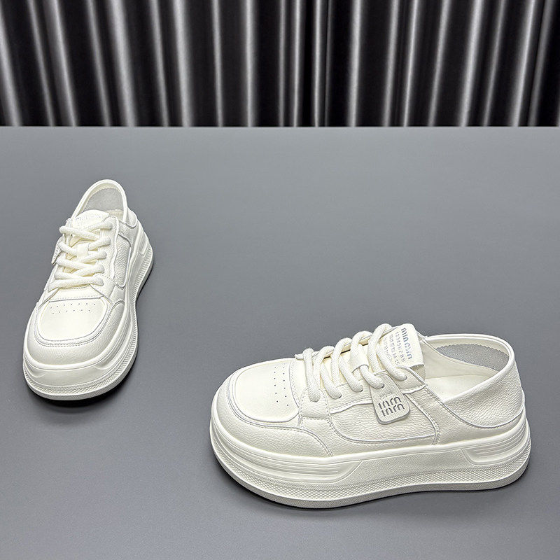 Hong Kong leather breathable thick-soled white shoes women's versatile casual board shoes 2026 spring and autumn new sports dad shoes