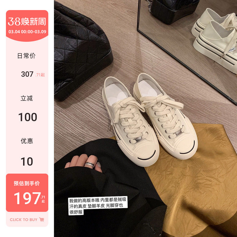 [sheii Su Yinyin] upgraded version ~ lambskin pad open smile thick-soled casual canvas board shoes women's white shoes