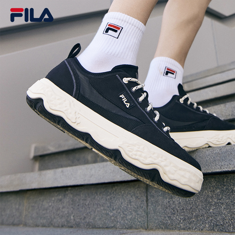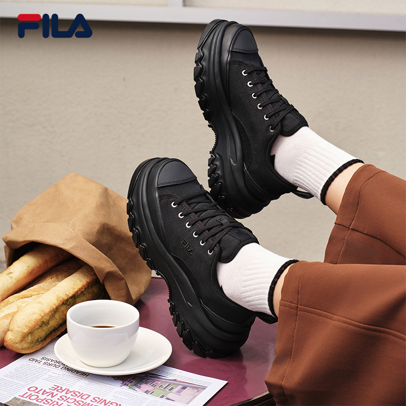 FILA official LAVA women's shoes, platform canvas shoes, casual shoes, height-boosting white shoes, sneakers, black shoes