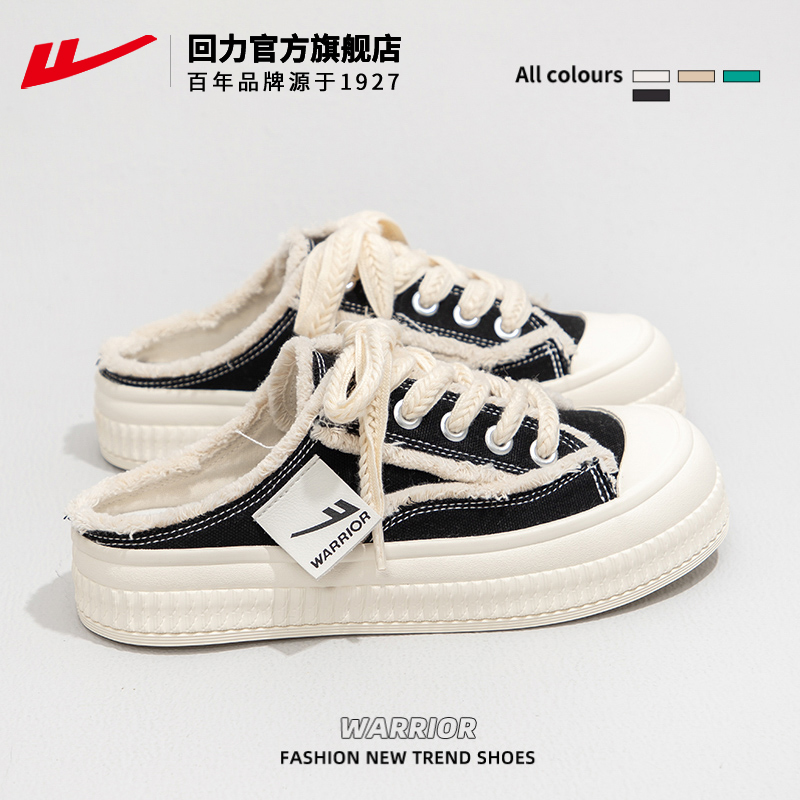 Huili official flagship store canvas shoes women's 2025 new model wearing a foot of women's shoes, headband, half-flipped shoes