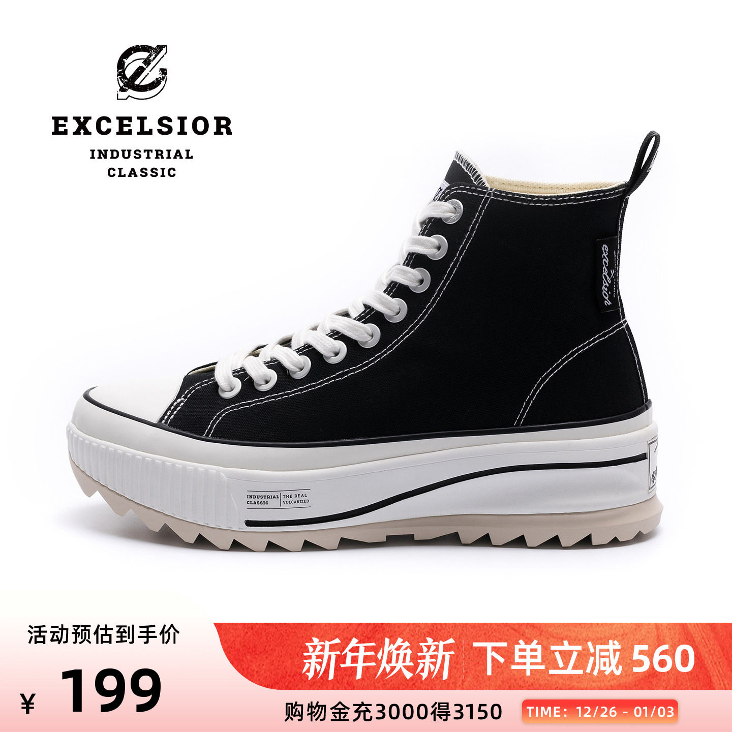 Excelsior Biscuit Shoes Official Black Women's Shoes Sneaker Shoes Heightening Casual Shoes Platform Sole High Top Espadrilles