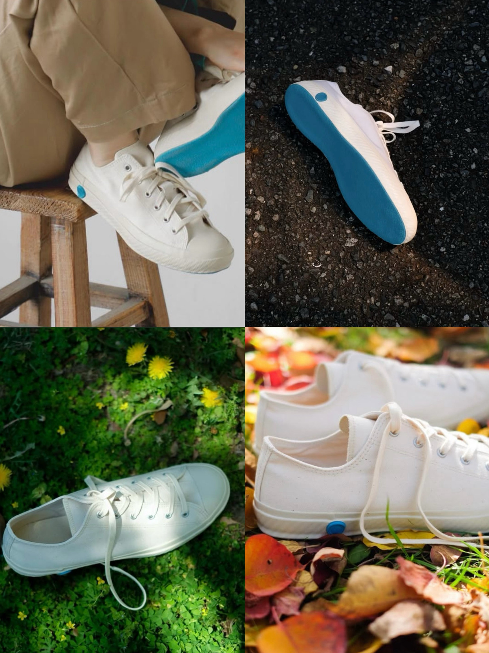 Shoes like pottery Kurume vulcanization process "Little Blue Dot" postmarked canvas shoes