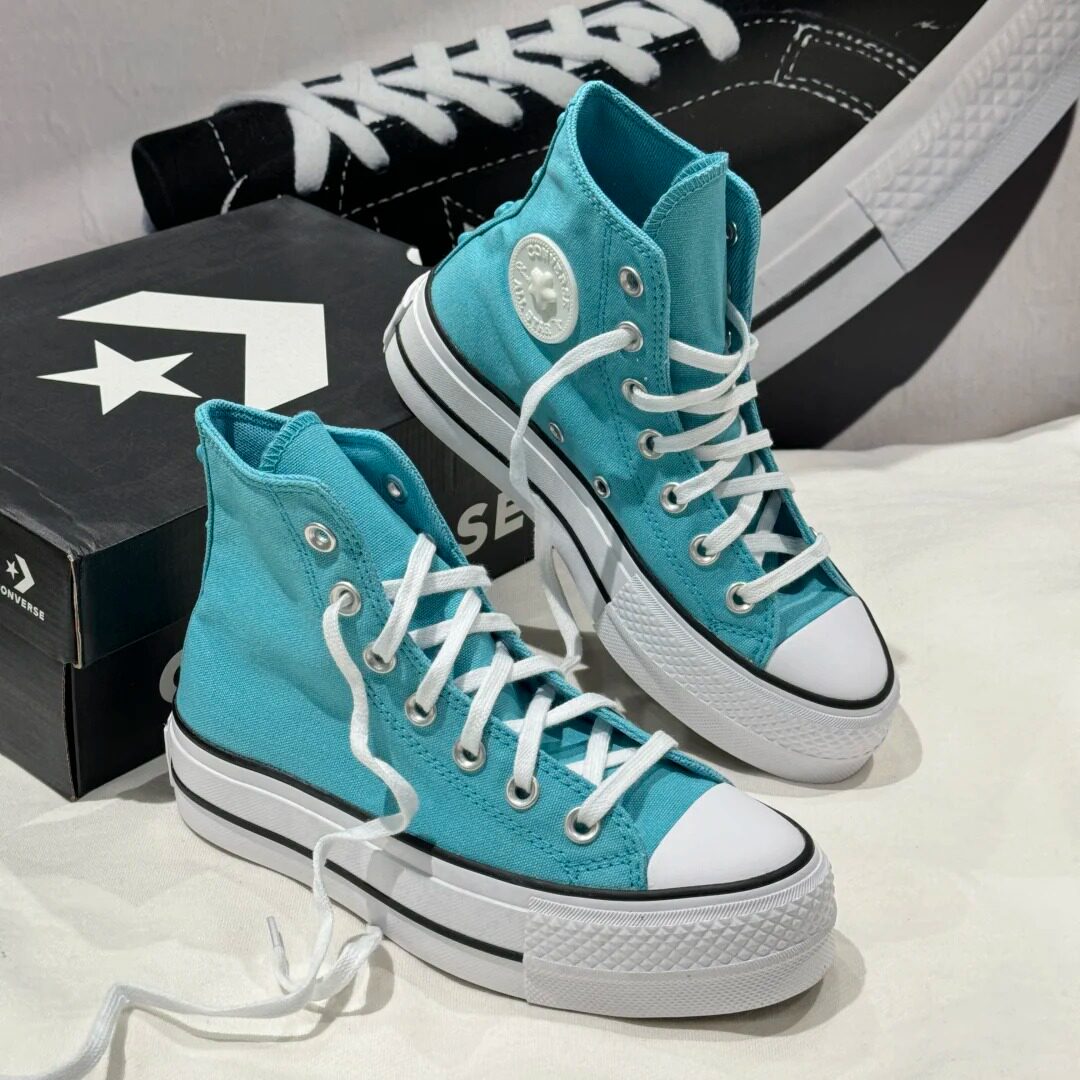 Genuine Converse 3D Small Floral Blue Platform Hi Lift Canvas Shoes A06492C