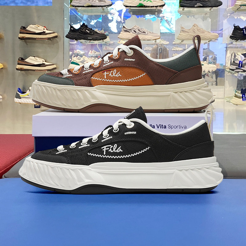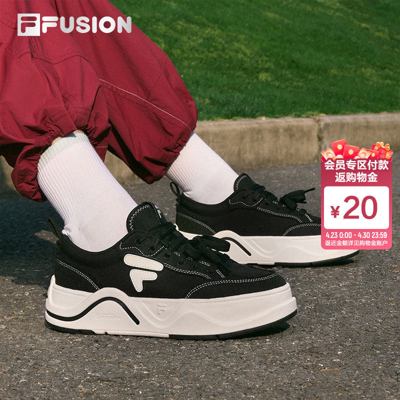 FILA FUSION women's shoes, canvas shoes, board shoes, versatile platform sneakers, casual shoes, black shoes men