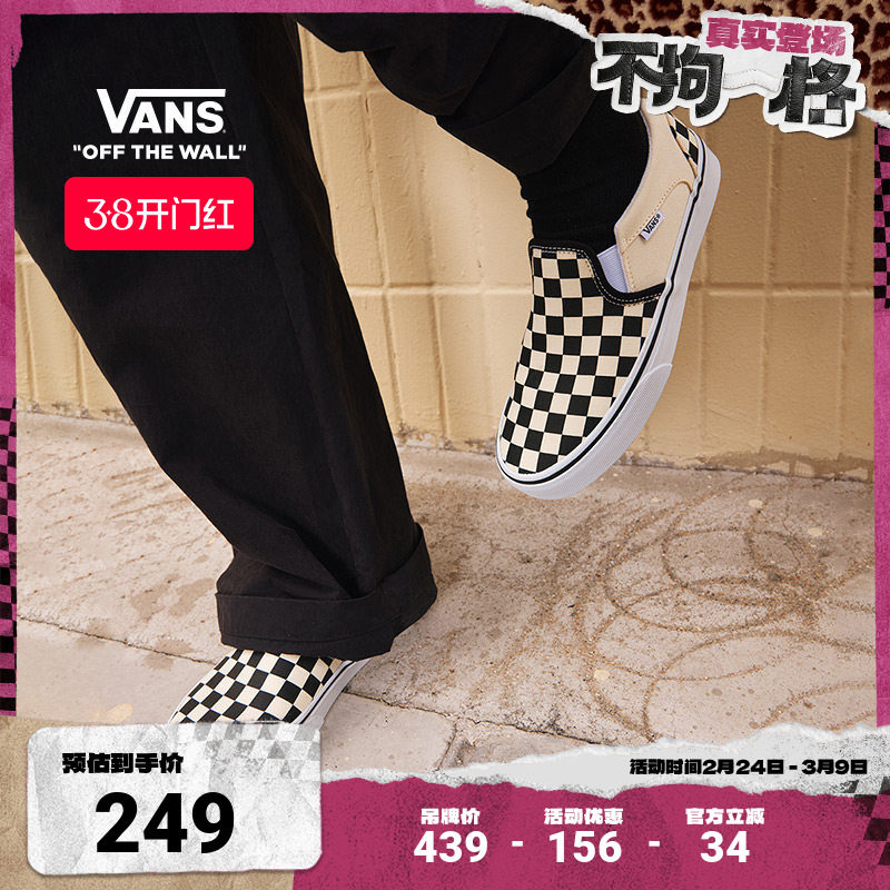 Vans official Asher black and white checkerboard summer kick-on men's and women's canvas shoes