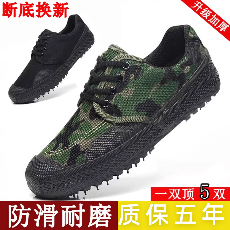 Genuine liberation shoes, men's and women's construction site labor protection, wear-resistant and odor-proof canvas, breathable yellow rubber shoes, camouflage military training shoes, sneakers