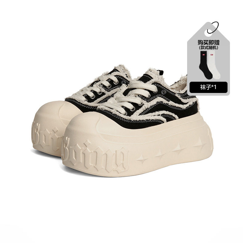 【Ouyang Nana's same style】Ouder smiler canvas shoes with thick soles and heightened black big-toe shoes