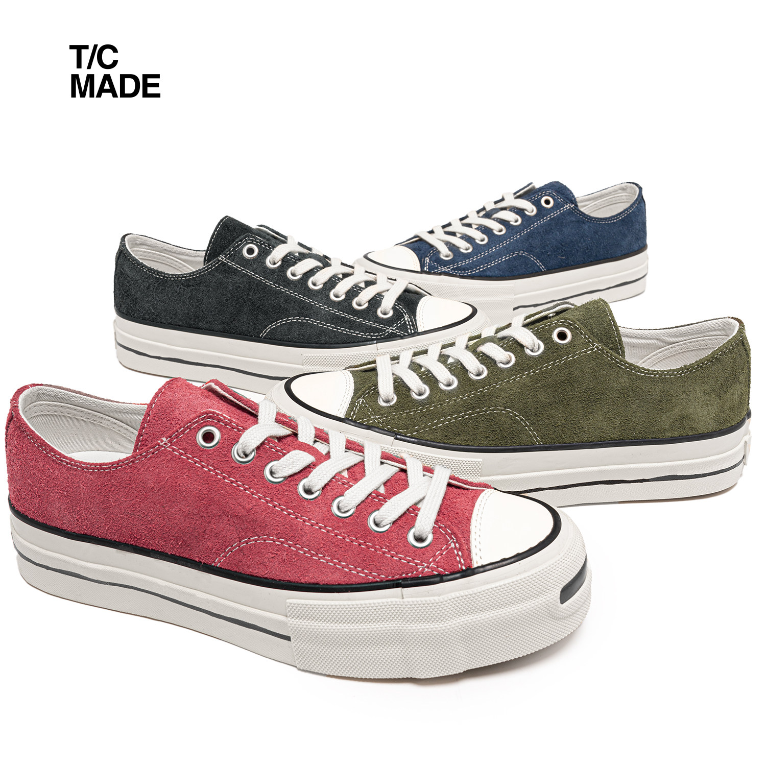TCMADE 024 open smile low-top cowhide canvas shoes fleece process vulcanized shoes thick-soled heightened men's and women's shoes