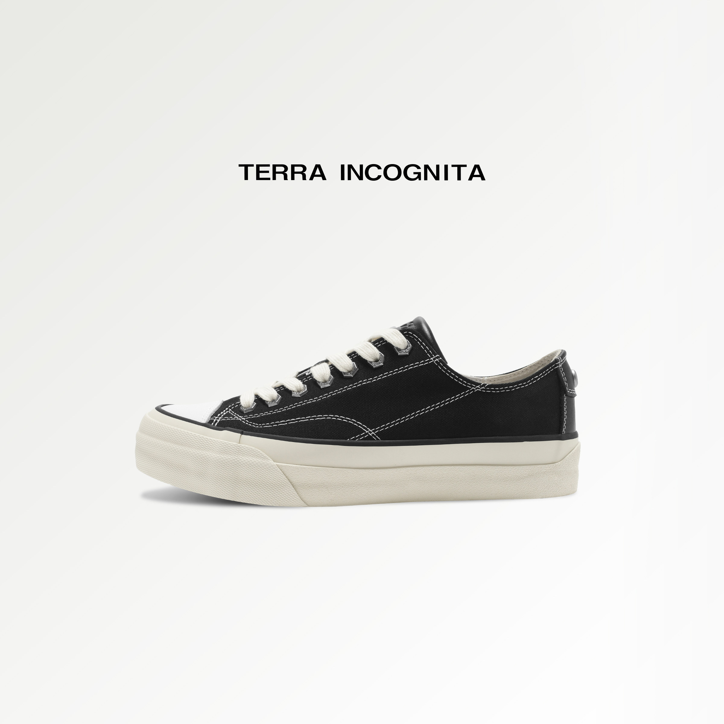 Purple label cowhide splicing vulcanized low-top canvas shoes casual commuting platform height TERRAINCOGNITA