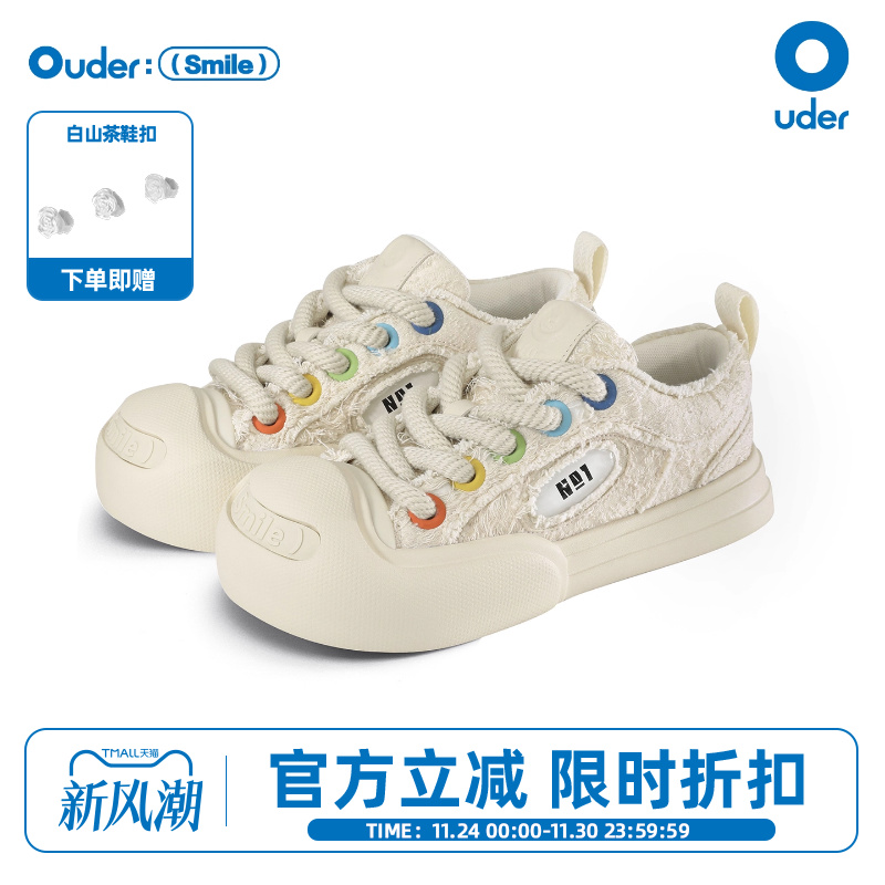 【Zhang Hao's same style】Ouder X Nanbowan co-branded smile canvas shoes, white camellia heightening big-headed shoes