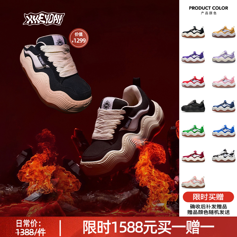 HEYDAY Tan Jianci Same Low-Top Wave Shoes Casual Versatile Canvas Shoes Unisex Thick-soled Bread Shoes for Men and Women