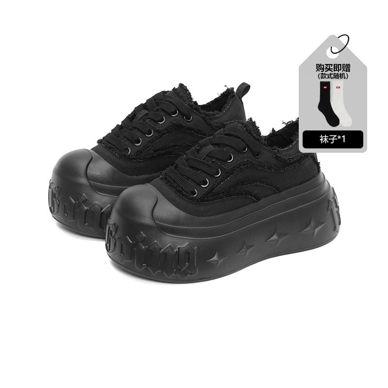 【Bi Wenjun Same Style】smilerepublic70s black and white coarse flower low-top platform heightened canvas shoe board shoes