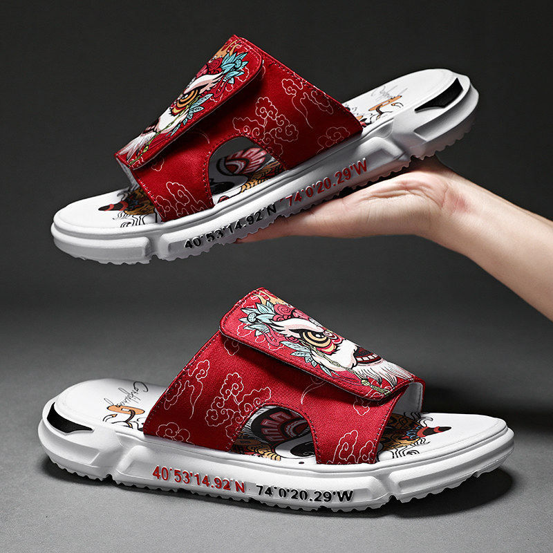 National tide slippers, men's summer ins trend, outdoor summer wearing beach sandals, stepping on, Internet celebrity lion awakening sports