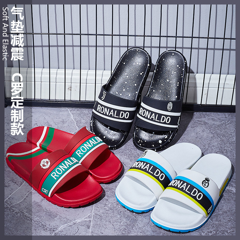Summer new football slippers Ronaldo men's trend Students wear sports non-slip couple home casual slippers outside