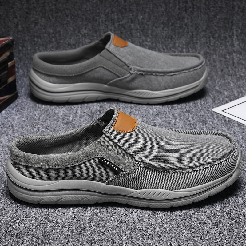 Soft-soled old Beijing cloth shoes men's 45 summer breathable casual half slippers 46 lazy people wrap toe plus size canvas shoes 47