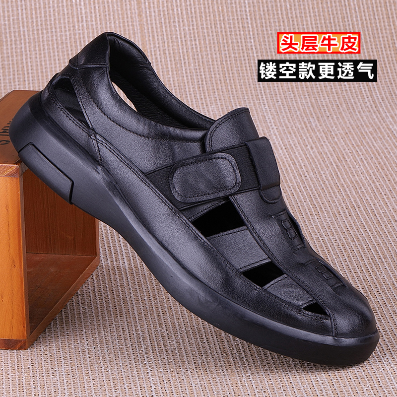 Foreign trade men's shoes, leather tail shorts, men's sandals, summer non-slip casual shoes, toe wraps, beach shoes, wear-resistant dad shoes