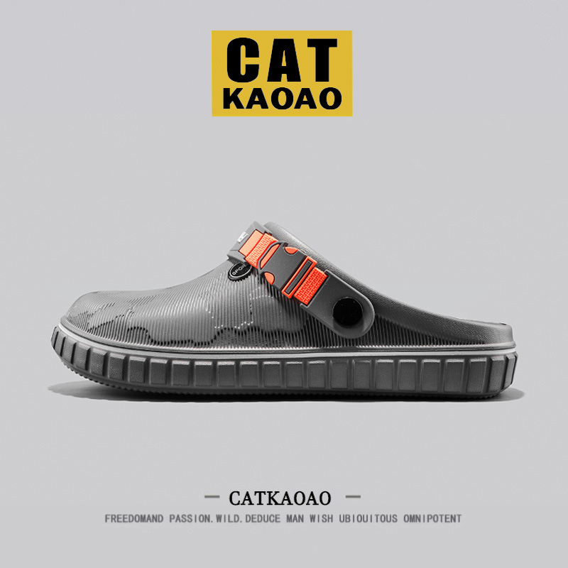 [American Light Luxury] CATkaoao hole shoes men's outer wear fashionable and versatile Boken slippers-stepping on-feeling dual-purpose sandals