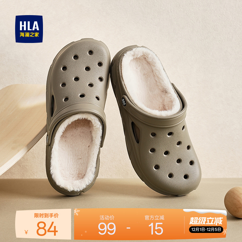 HLA/Heilan Home Men's Shoes New Winter Fashion Casual Plush Hole Shoes Toe Comfortable Slippers Wool Slippers