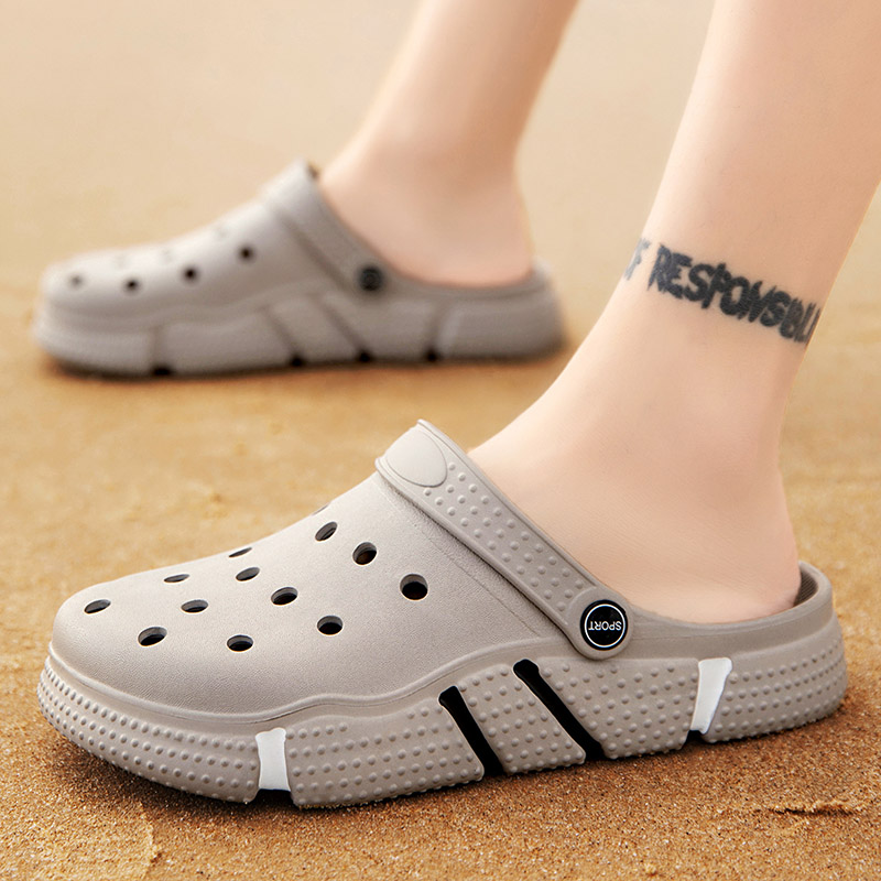Hole shoes men wear non-slip shoes outside in summer, dual-purpose semi-wrapped toe teenagers step on feel sports beach sandals