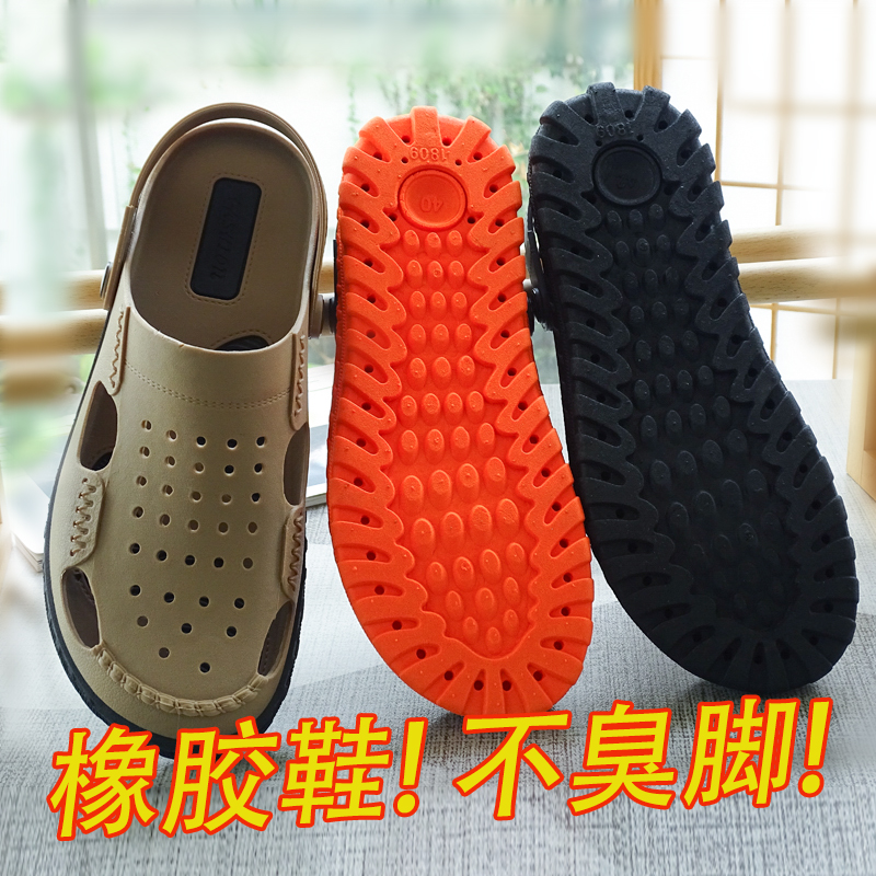 Natural rubber men's hole shoes summer toe cover outside sandals casual fashion breathable and wear-resistant beach shoes