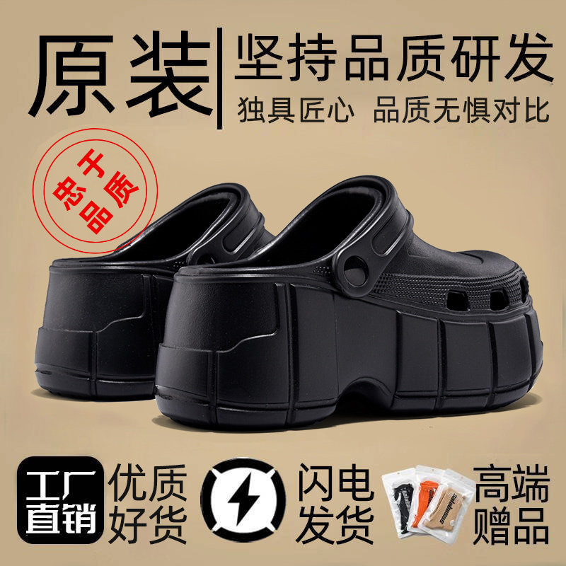 Paris hole shoes black men's and women's 2026 new summer wear thick-soled heightened sandals and large size toe slippers