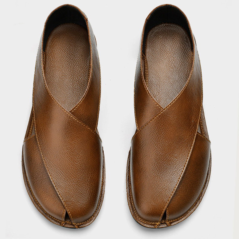 Men's leather sandals trend European station Roman sandals youth hole shoes 47 plus size casual shoes breathable beach shoes