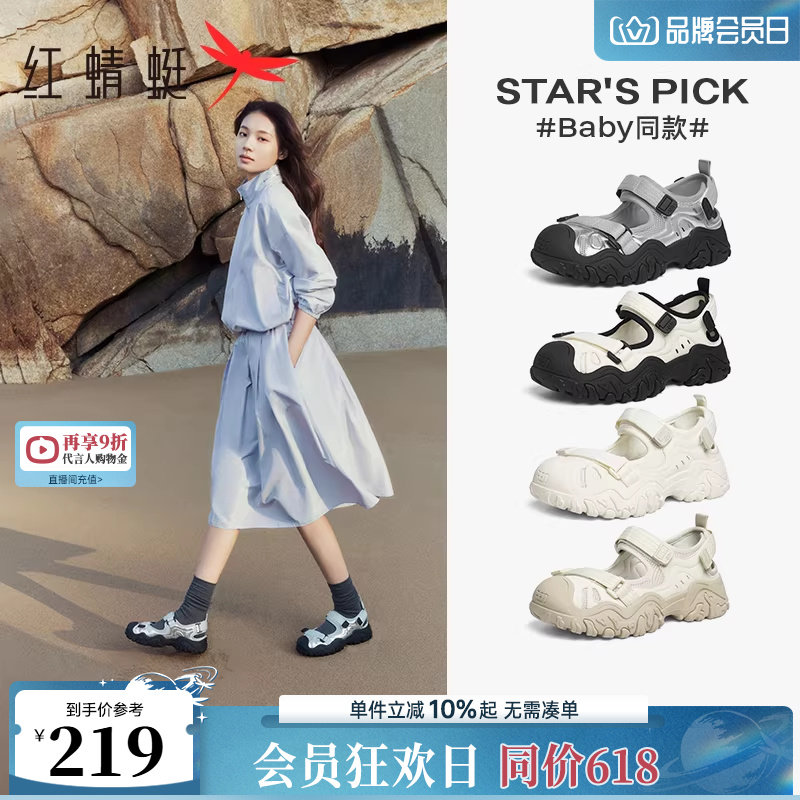 Red Dragonfly Baby, the same style of fishbone river shoes, spring and summer women's shoes, breathable casual Baotou mountaineering and hiking sports sandals