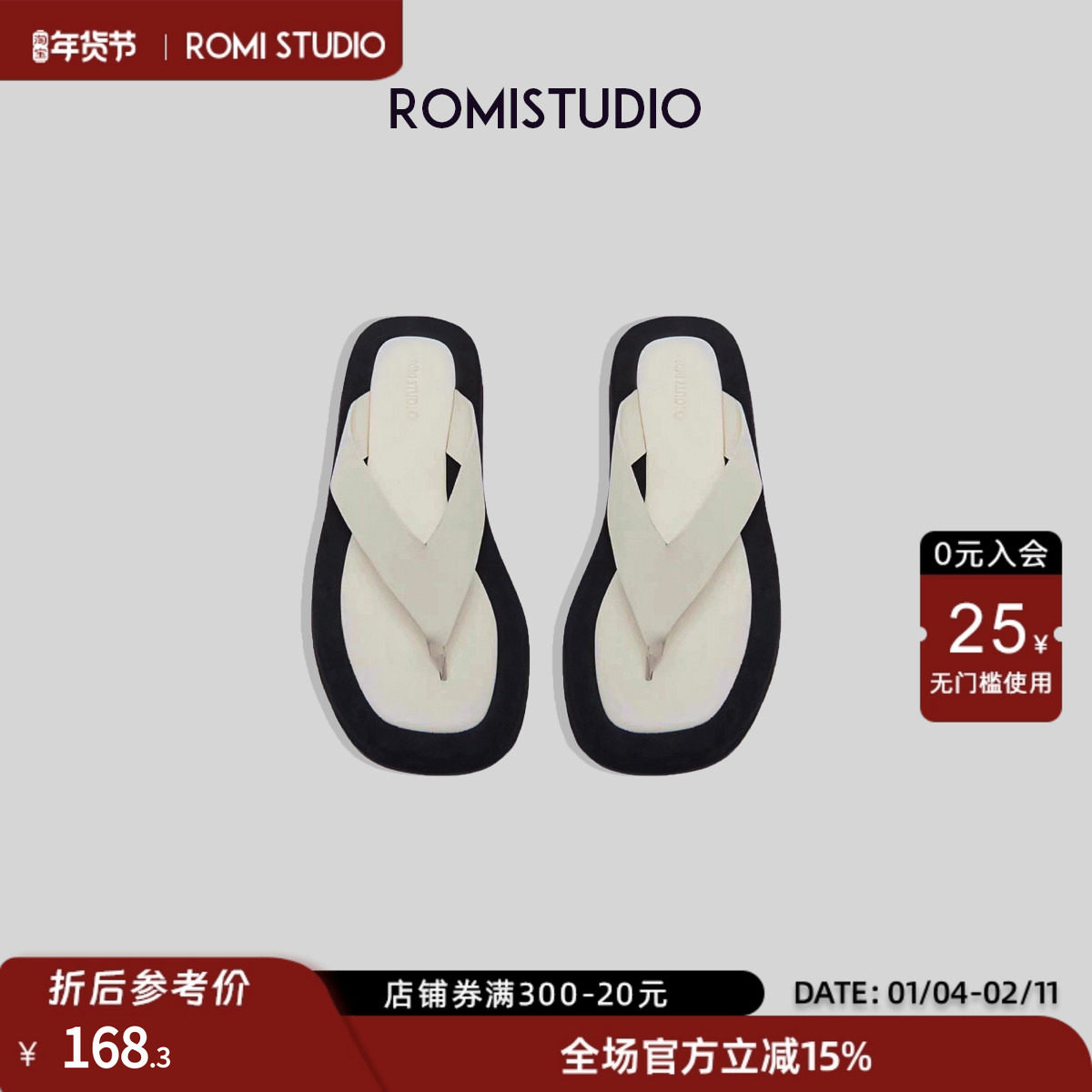 ROMI STUDIO Sophisticated Elegance Niche Design Platform Sole Herringbone Toe Wear Half Slip Sandals S3558